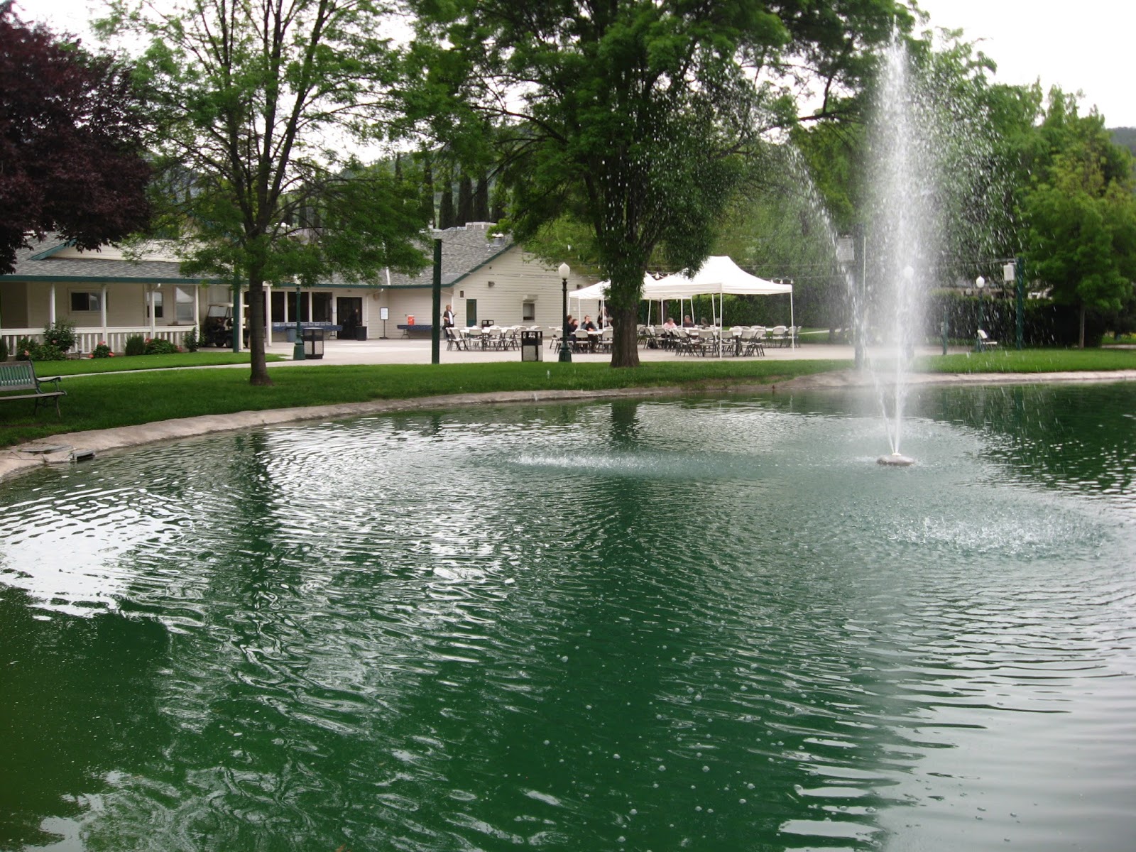 The meal site is visible across the pond here. The weather was lovely so they ate outside the dining room much of the time.
