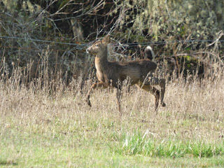 However, the dog was another story. The sight of old, deaf and slow Shirley made them bolt over a fence and out of sight. Shirley never saw them.